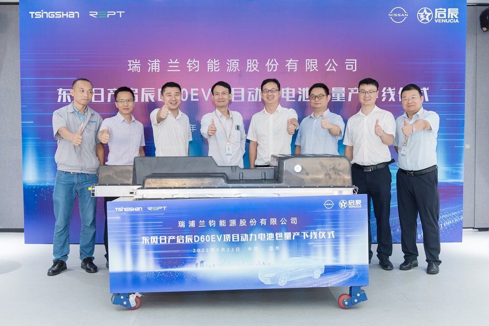 9月22日下午,瑞浦兰钧能源与东风日产启辰D60EV项目动力电池包量产下线仪式顺利举行,这既是双方首次深化合作的标志性成果,也是瑞浦兰钧能源在新能源动力电池领域落下的一枚重子。瑞浦兰钧能源董事长曹辉、市场总监张小聪、系统制造科副总监李松林,东风日产新能源开发部部长兼启辰品牌开发总监王峰、副部长黄照昆、车辆技术专家邱德根、电池技术专家陈尚云、电池组长曾俊峰等领导出席本次下线仪式。