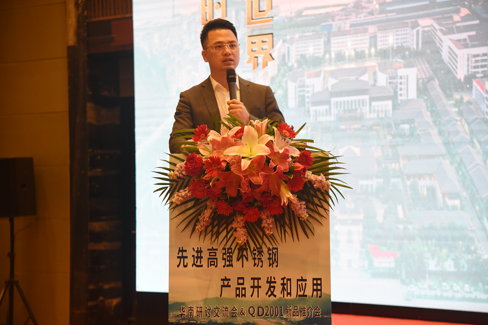 青拓研究院板材开发部部长肖祥勇作《先进高强度不锈钢产品开发和应用》报告,分别就QN系高氮节镍型不锈钢产品、QD2001经济型双相不锈钢产品的发展历程进行介绍,并对QN系列产品市场优势进行剖析,其凭借优异的耐蚀性、极高性价比,已与众多下游龙头企业进行深度合作,涉及装配式建筑、轨道工程、石油化工、电梯设备、工业集装箱、家电厨具等行业。