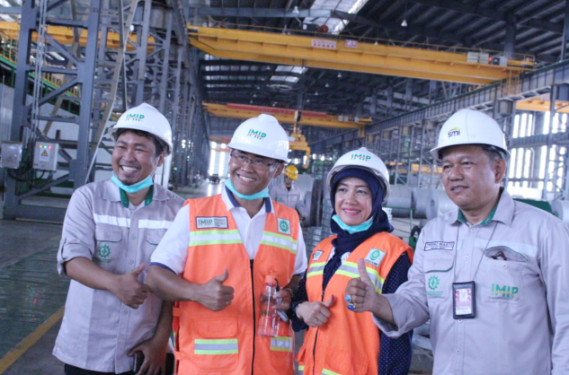 相关人员陪同Panut Mulyono一行参观了园区的炼钢、热轧、冷轧厂区,并详细介绍了RKEF+AOD生产工艺流程以及相关配套设施。Panut Mulyono对园区先进的不锈钢生产工艺和巨大的生产规模大加赞赏。