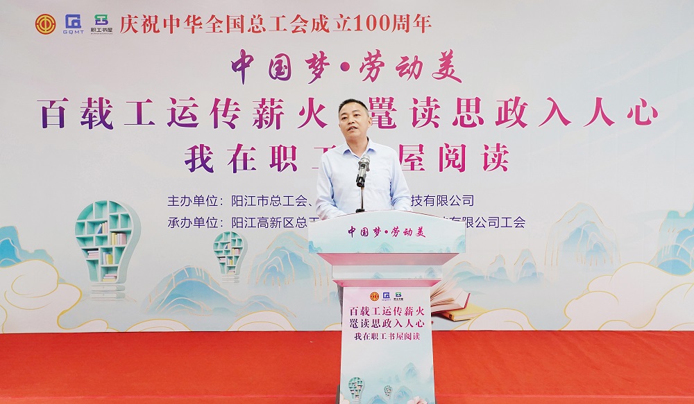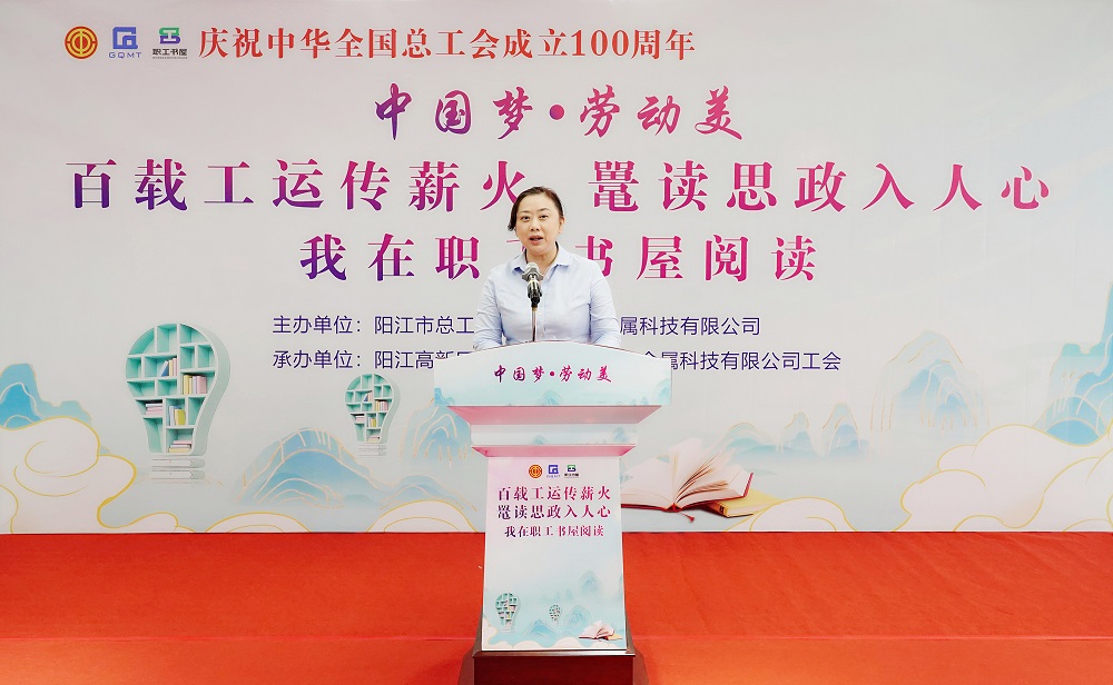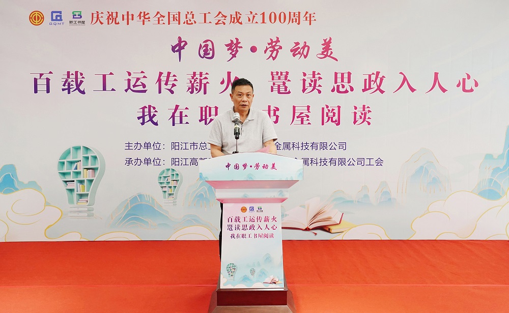 为深入推进全民阅读活动,持续提升广大职工群众思想道德素质和科学文化素养,4月22日,由阳江市总工会和广东广青金属科技有限公司工会联合主办的“百载工运传薪火 鼍读思政入人心——我在职工书屋阅读”主题活动在广青科技综合楼三楼职工书屋举行。阳江市总工会党组副书记、常务副主席冼卫成,副主席黄创智,阳江高新区总工会主席阮广渊,公司党委副书记、工会主席王大庆出席活动。来自公司各部门(厂)的有关负责人、劳模代表和职工代表等90余人参加了活动。