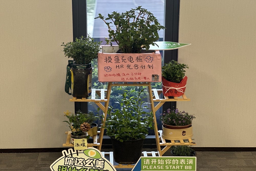 在EHS各位小伙伴的积极参与下,我们在厂区四处收集可利用再生资源,我们利用废弃损坏的安全帽、坏掉的空气加湿器、坚果盒、三八女节礼品的包装盒、消防自救呼吸器盒、闲置的陶瓷水杯等改造为种植容器,赋予旧物新功能‌,使它们焕然一新,展现出不一样的春天色彩,也给我们部门增添了特殊的艺术气息!