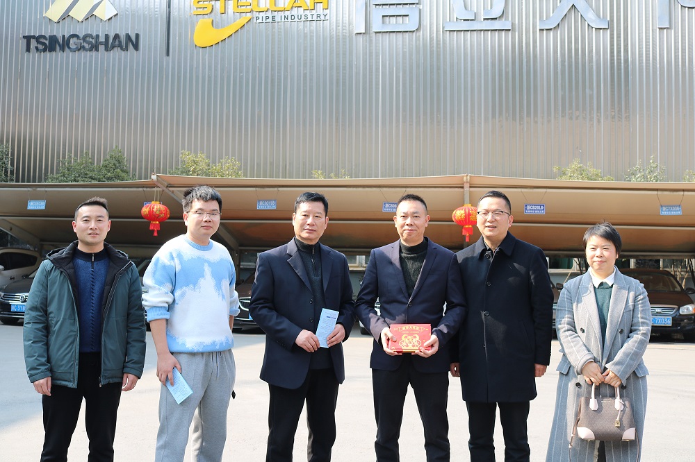 2月5日下午,青田县经济商务局局长刘会荣、副局长吴海燕一行为浙江jinnian金年会钢管有限公司留青过年员工送来新春大礼包,在确保做好疫情防控工作的同时,让广大员工度过一个温馨、欢乐、祥和的新春佳节。